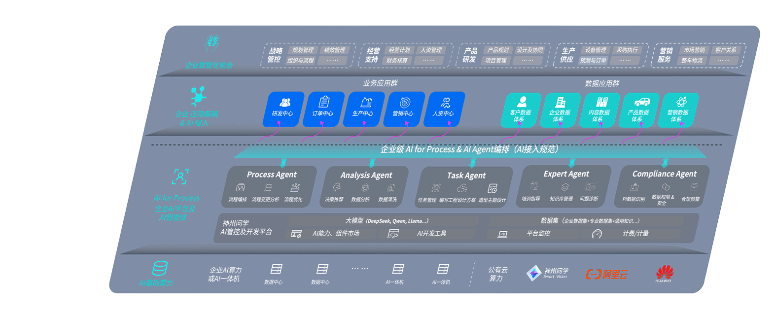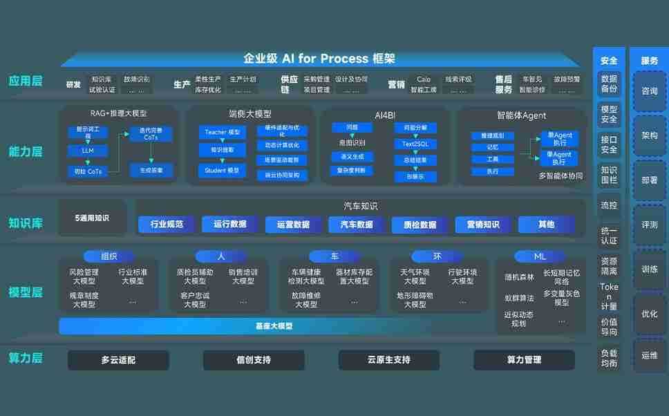 端到端的一站式AI工作空间深度融合了从企业战略规划到日常经营的全流程业务板块,,,,定向解决车企内部领域多、、、部门多、、、链条长、、、场景碎片化等难题,,,支持车企快速构建以AI为核心的生产力写作体系,,,,实现任务执行与AI能力的无缝集成与交互